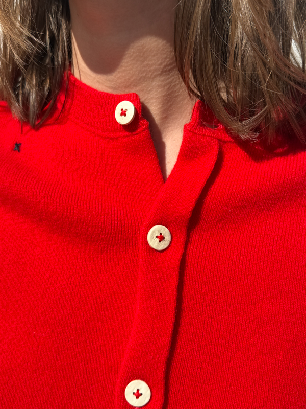 louisa cardigan red fant projects made in Italy knitwear mulesing free front model
