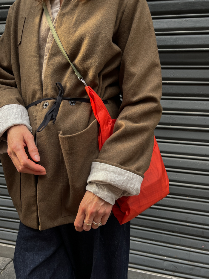 We curated her beautiful canvas cotton bags as they fit Sukha so well. This beautiful fabric, a 520-gram 100% cotton canvas, is sourced from France, where a company specializing in technical fabrics for sailing and camp gear brings it to life. As of this year, we have a special collaboration with NONA and she made a selection of bags in a beautiful custom Sukha color. The Banana bag, the Triangle Messenger bag, and the Slouchy bag have become true classics!
