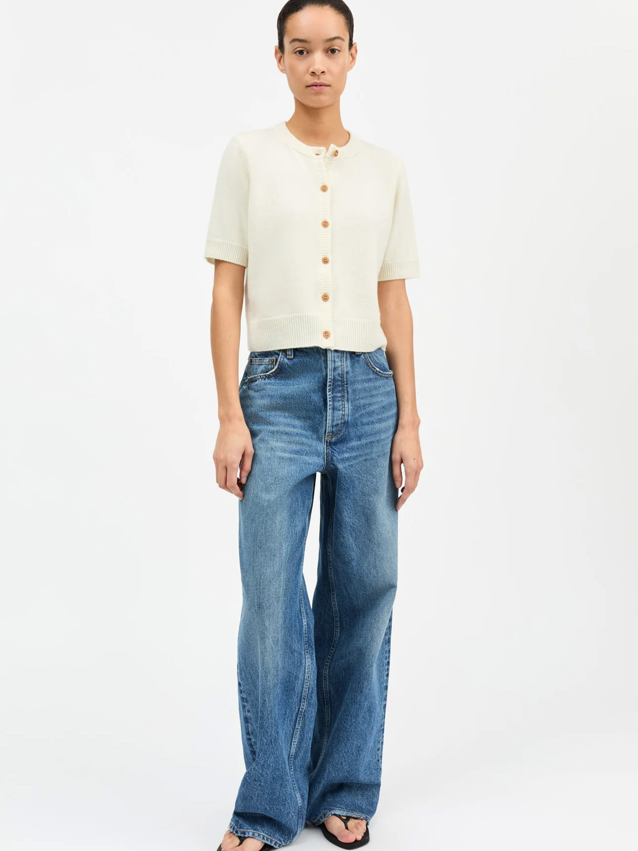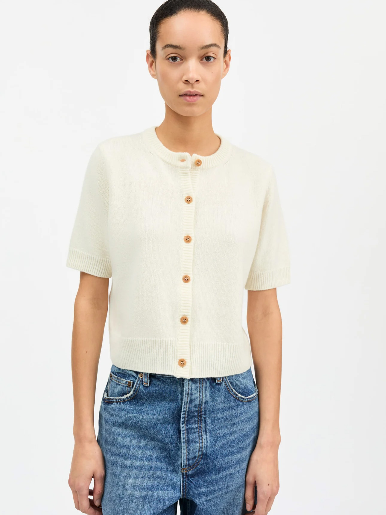 carmine cardigan skall studio short sleeve knit white italy merino wool