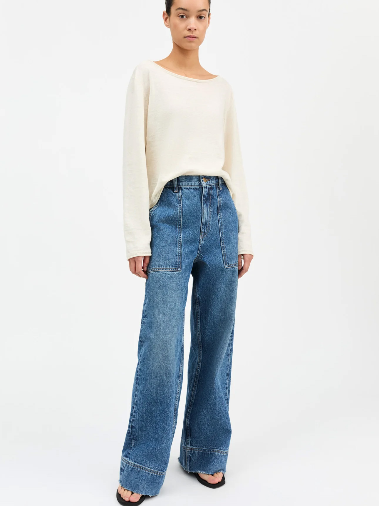 heather jeans highwaist slouchy blue organic gots certified cotton skall studio denmark turkey