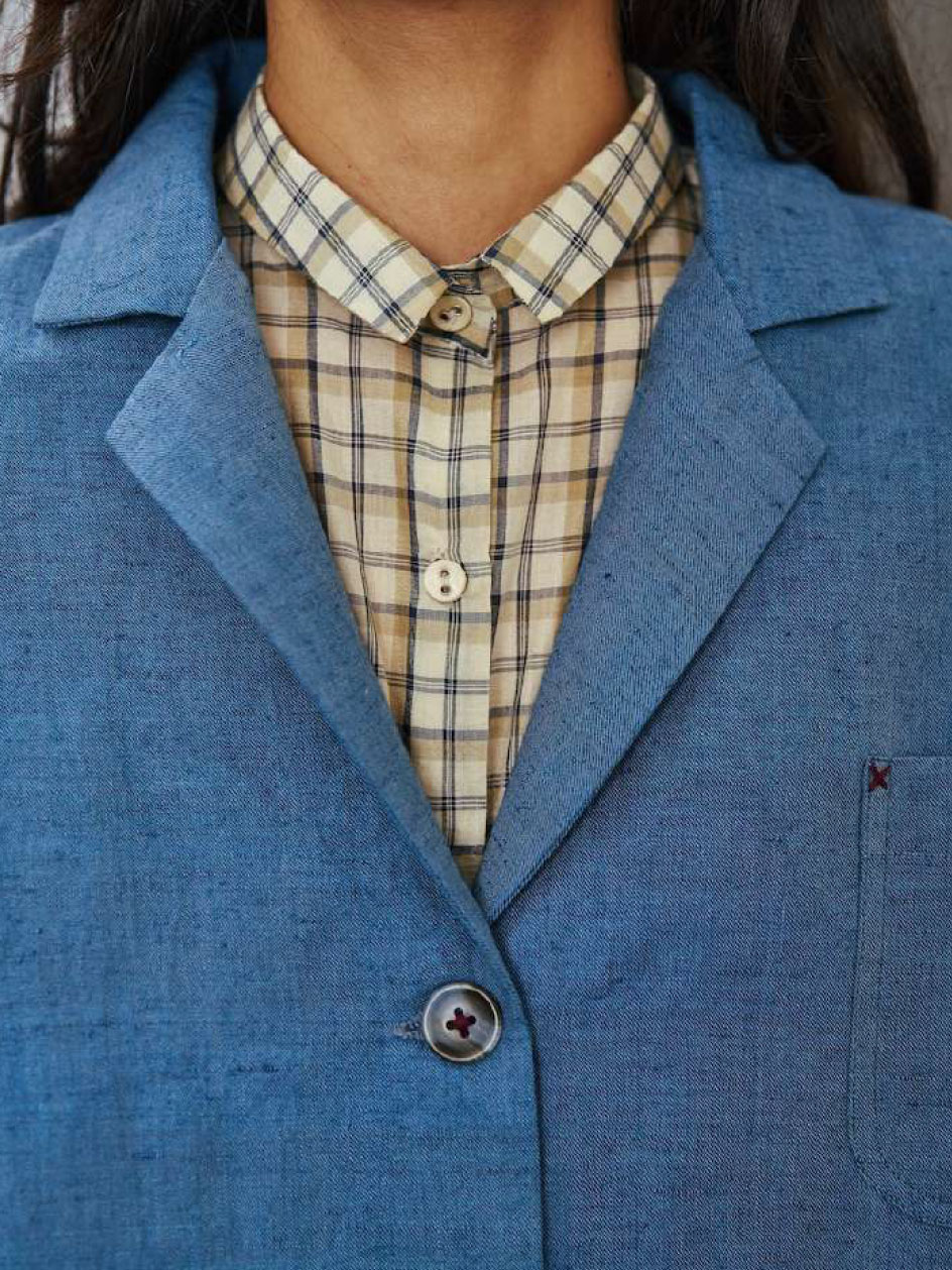 carl jacket handloom cotton steel blue jim pants tailored runaway bicycle india full look