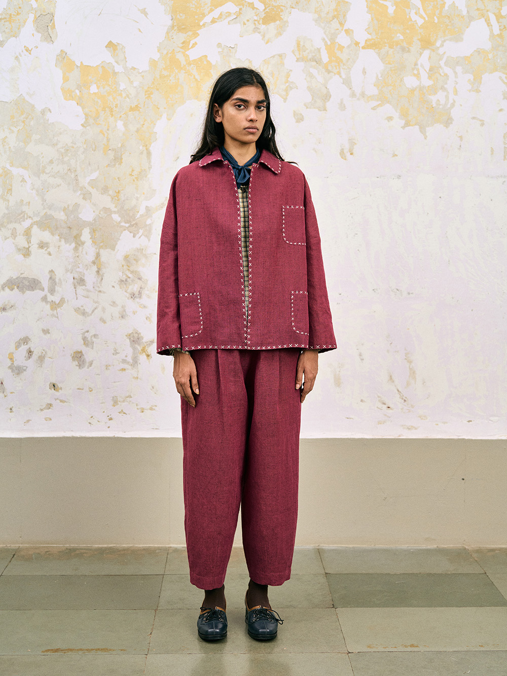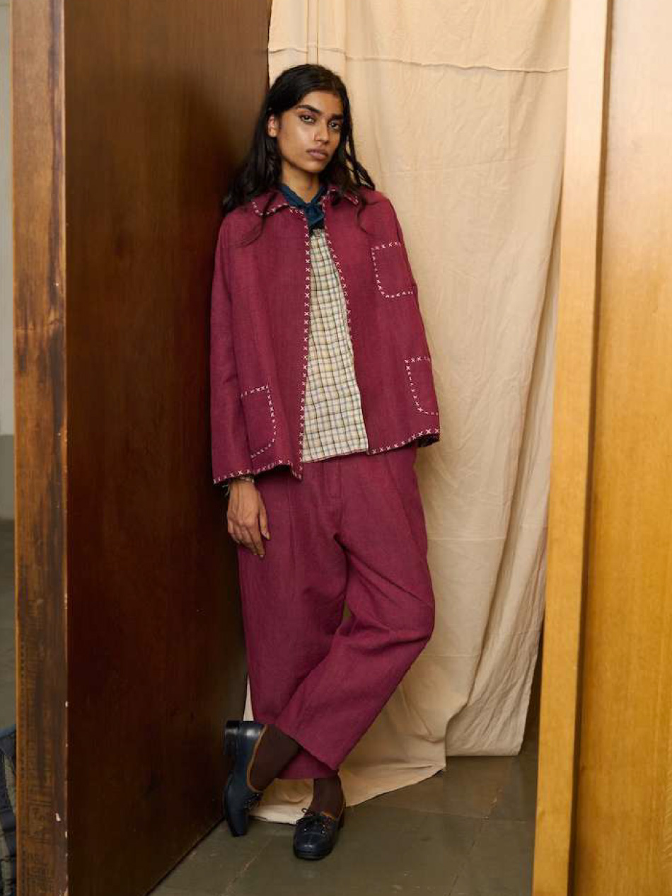 pete jacket dark jim magenta handloom cotton runaway bicycle india full look