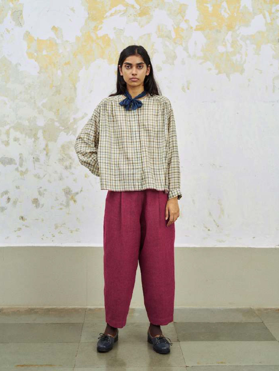 corin shirt charcoal beige checks cotton silk runaway bicycle full look