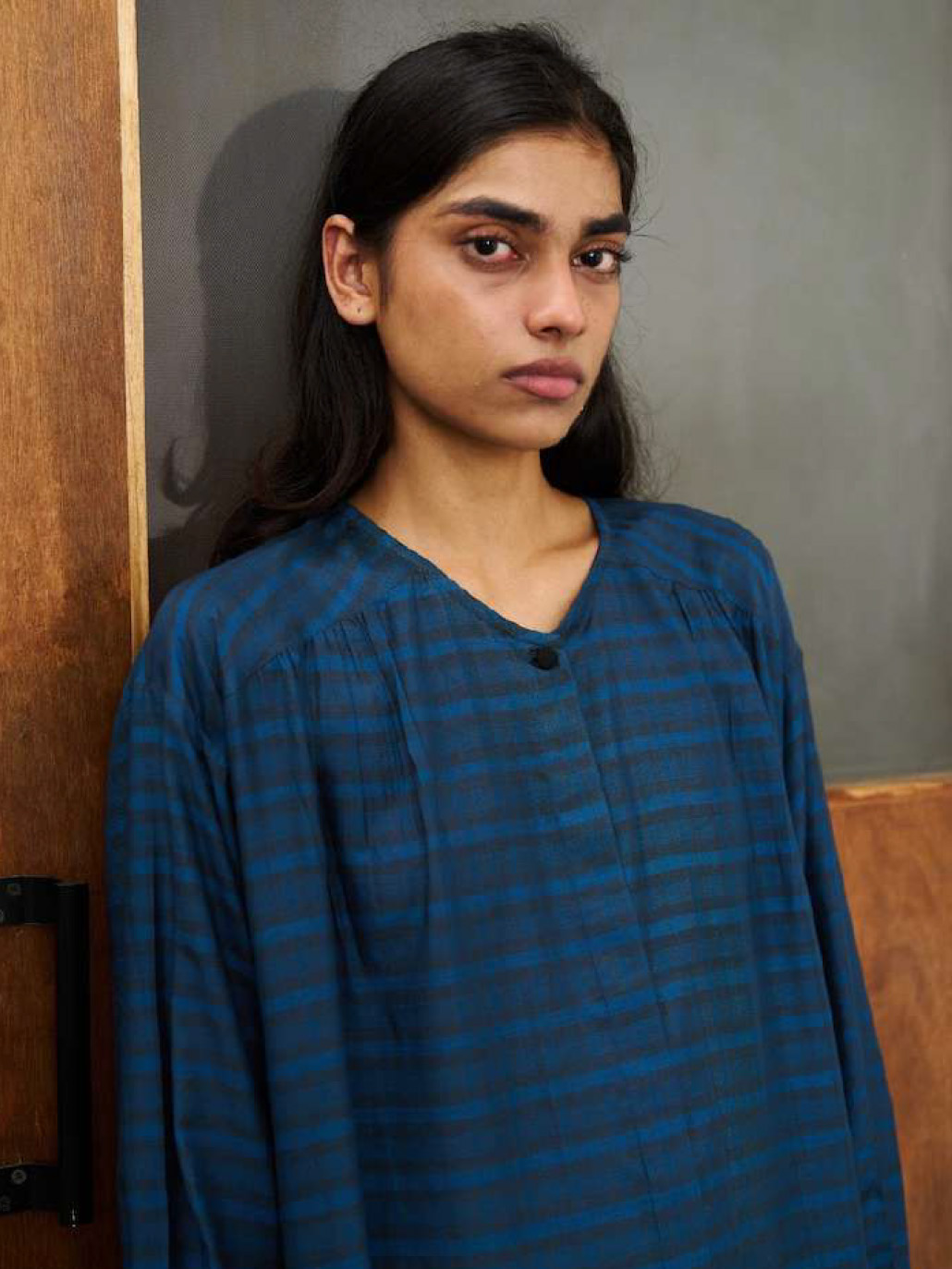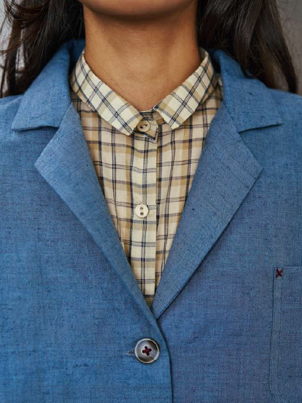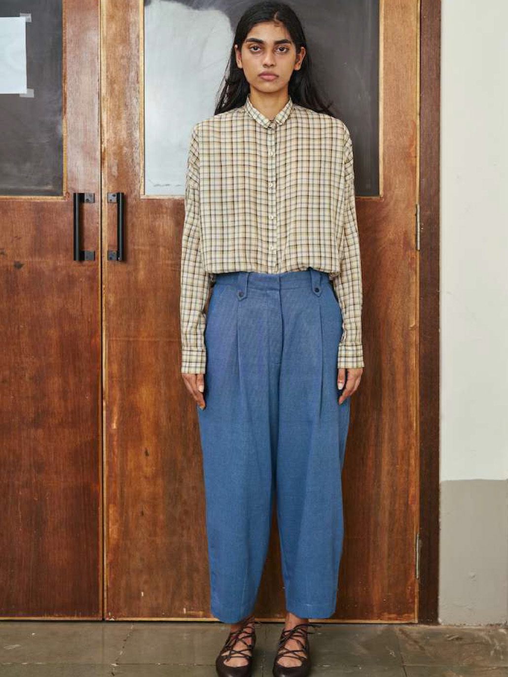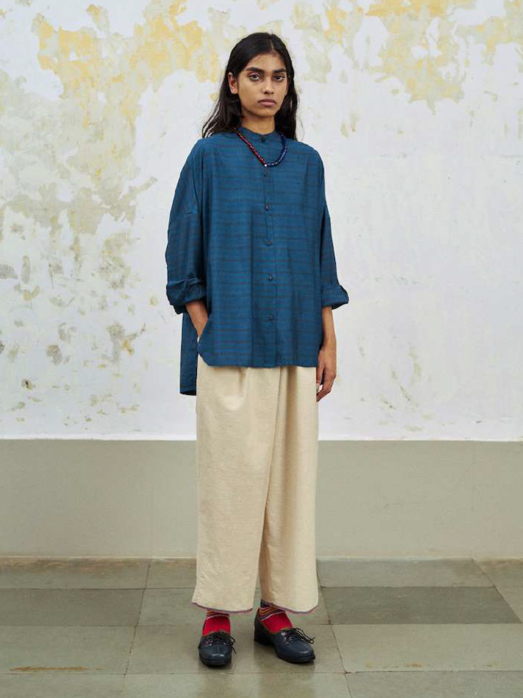corin shirt charcoal beige checks cotton silk runawau bicycle
