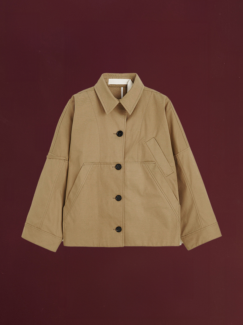 Jules jacket is an enduring favourite. It is tailormade with a uniform-inspired look, a boxy fit, and a roomy, architectural sleeve that allows easy layering. Made from weather-resistant Ventile fabric, this piece is crafted for perennial wear with high side pockets and classic horn button closures.