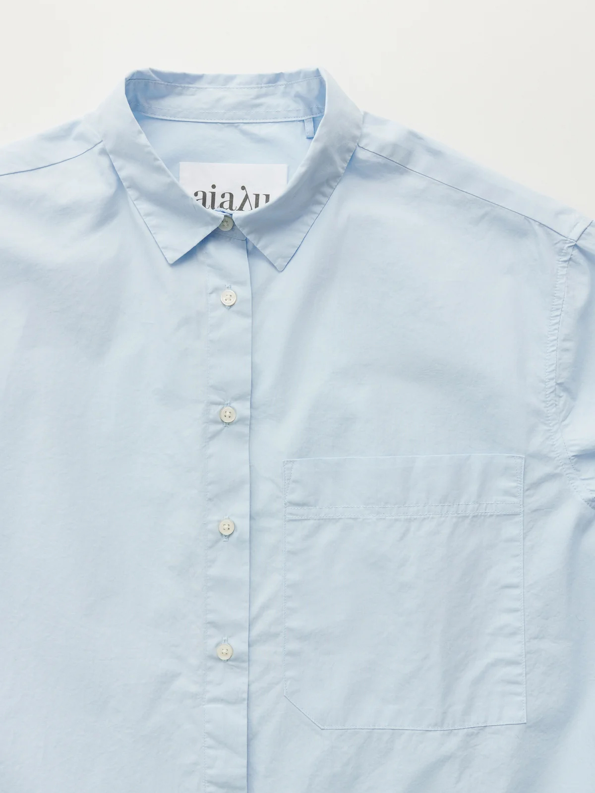 Made from crisp and soft organic cotton poplin, this button-down has classic cuffs, collar, and a single front pocket, with a minimalist silhouette that is balanced by the volume of the shape. The combination of the shirt’s tailored details and fit makes it an instant classic.